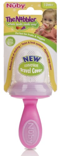 The Nuby Nibbler is a great way to introduce soft solids when your child is ready. It allows your child to eat whole foods without the risk of choking. With the "Squeeze and Twist" Locking System, your child can safely use without risk of opening; meanwhile it is easy as 1-2-3 for parents to place food inside! The Nibbler also come with a convenient cap to keep it clean during travel and storage.