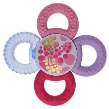 Features Teething ring and toy rattle in one Calms sensitive gums Distracts from teething Water-filled ring Twister ring teether BPA- and PVC-free