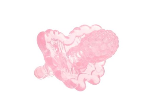 The all new RaZ-BlueBerry Silicone Teether in Pink combines a silicone teether and pacifier in one.