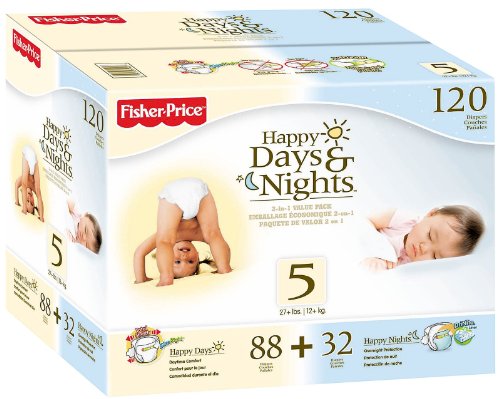 Fisher Price Day and Night Diaper Combo Box Case provides around-the-clock protection to your baby. The fit and absorbency level offered by these diapers is great and helps your baby to stay dry. The stretchable waistband makes these diapers comfortable for your baby. Included in Value Pack are 88 Happy Days diapers and 32 Happy Nights diapers.