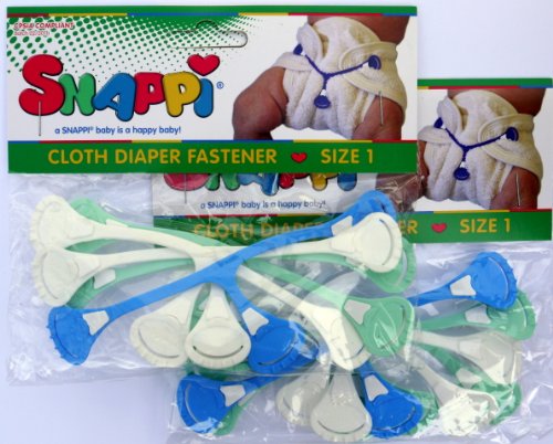 Pack of 10 (4 mint green, 4 white, 2 blue). The Snappi is a safer, more reliable, EASY to use fastener for cloth diapers that replaces the nasty diaper pins. The stretchable non-toxic Snappi hooks into the diaper material to make a strong closure. They work best with diapers that have a loose enough weave for the Snappi to hook into. (Snappi terry cloth diapers, cotton pre-folds, and others) Note they do not work well with flannel or other tightly woven diapers.How to use your Snappi:To improve elasticity, stretch your Snappi fastener a few times before use.Step 1: Hook leftStep 2: Stretch across and hook rightStep 3: Stretch down and hook centerThe Snappi should go from a "T" shape to a "Y" shape when stretched properly.Warning: Always use a cover over a Snappi fastener. Keep out of children's reach when not in use. Do not use a Snappi fastener on toddlers that have the ability to undo or take off their cover/diaper/clothes. Do not use your Snappi for longer than 6 months. Not UV resistant - exposure to the sun can reduce the effectiveness of the Snappi.CAUTION: Any tear in the Snappi can lead to separation of a piece, presenting a possible choking hazard. Inspect the Snappi before each use and discontinue using immediately if there is any sign of cracking, tearing, breakage or wear of the teeth or any other parts. Do not cut a Snappi as this may cause tearing.