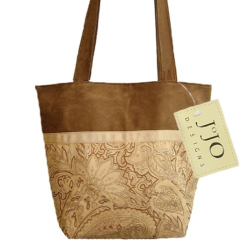 The Detailed Description of Camel and Chocolate Paisley Microsuede Handbag/Tote BagFeatures