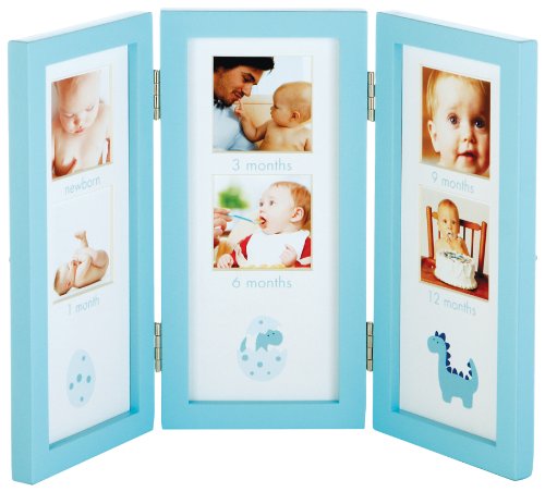 Elegantly display three adorable little images of your baby from belly to birthday. This three hinged frame set includes6 openings to showcase your baby's growth during the first wonderful year. A little hatching dinosour shows the progression of your baby's growth under the memorable photos.