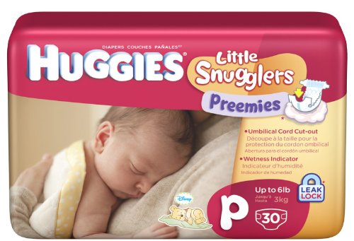 These Huggies Preemies Little Snugglers diapers are for babies weighing up to 6 lbs, Size P. There are 30 diapers per bag. Bag design may vary from image shown. More moms choose Huggies for their babies than any other brand.