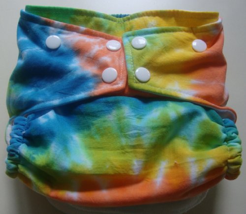 The ButterBears Multi Color One-Size Tie-Dye Pocket Cloth Diapers are the one and only mother tested and approved tie-dye cloth diapers on the market today. NEW and improved leg gussets to help prevent wicking. You will love the improvement! To be completely waterproof these do require a cover. Inserts become more absorbent after several washings.ButterBear's diapers adjust to fit babies approximately 10-40 pounds. Adjustable snaps closure allows for a snug fit every time. Additional hip snap to prevent wing droop. NOW 6 layers of microfiber. 3 layers of microfiber in each insert. Use both inserts together for maximum absorbency. Cotton tie-dye is backed with PUL. Due to the tie-dye colors all diapers are individually unique. Package includes 1 newborn and 1 regular insert. Inner of diaper is suedecloth. All diapers are dyed with safe procion dyes. The dyes are also set so there is no need to worry about the tie-dye running to your other diapers. They are safe to wash with any of your other cloth diapers.