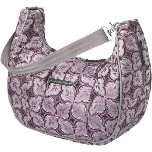Violet Sapphire Roll Touring ToteShimmering violet jewels, set in the serene splendor of a glistening grey and lilac patisserie of regal colors presented on richly textured Brocade.Daringly fashionable, the Touring Tote fuses a new level of innovative functionality with unparalleled style. A bag that is the first of its kind to offer a truly elegant shoulder to stroller flexibility, it promises to change the way today's fashion-forward mother travels with tots in tow.Violet, grey and lilac garden-inspired design. Grey water-resistant lining and straps.3 carrying options: small hobo, long shoulder, Valet Stroller Clips (included)New premium metal logo plate on frontDouble-headed zipper for easy opening1 lined front pocket with magnetic closure1 large zippered back pocket with removable changing pad2 PPB signature side zippered pockets for cell phone or iPod4 spacious interior pockets2 interior bottle or sippy cup pockets1 interior pacifier pocketPPB-monogrammed plastic wipes caseDimensions: 10" L x 14" H x 6.5" WCare: Dry clean only. Spot clean liner with damp cloth.