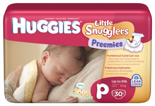 These Huggies Preemies Little Snugglers diapers are for babies weighing up to 6 lbs, Size P. There are 30 diapers per bag. Bag design may vary from image shown. More moms choose Huggies for their babies than any other brand.