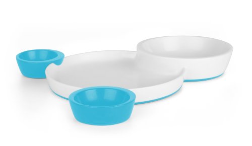 306 Engaging kids at mealtime can be a challenge. What better way to keep their interest than to give them their own special plate? Groovy offers a fun way to serve meals in a customizable configuration. This interlocking plate and bowl set includes a toddler-sized plate with two separate compartments plus two small bowls that attach to the edge of the plate in a variety of positions. The small bowls are perfect for dipping - always an engaging activity at mealtime - or for serving small portions. Features: -Bowl. -Color: Blue. -Four compartments keep food separated. -Two small bowls, perfect for dipping sauces or small portions. -Place bowls anywhere on edge of plate - fun, customizable configuration. -Scratch-resistant, dishwasher-safe materials. -Slip-resistant base. -Recommended ages: 9 months.