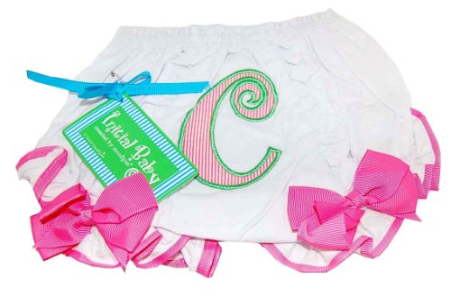The Detailed Description of Mud Pie Baby Girl Pink Initial Cotton Bloomer, Letter C, 0 - 6 MonthsFeatures
